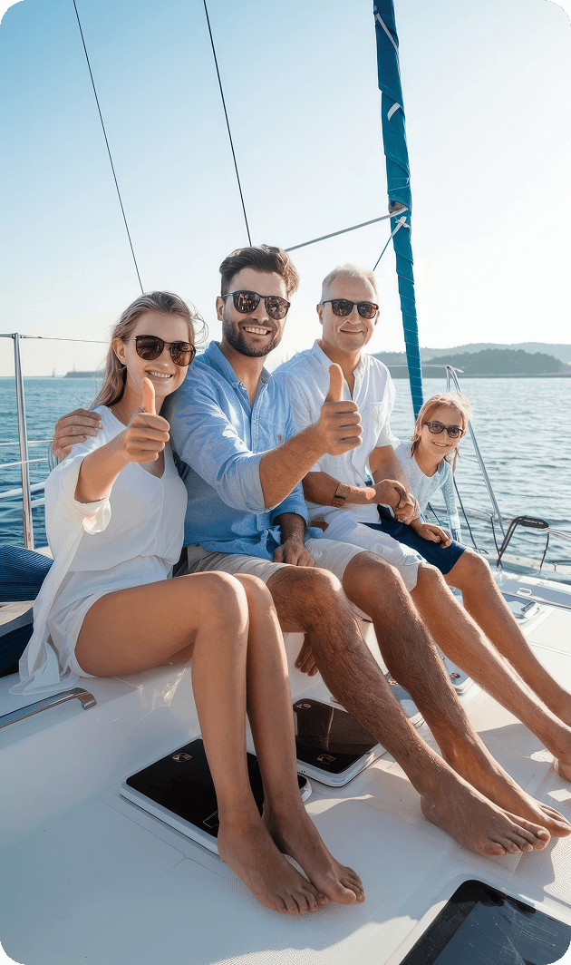 Unsere Kapitäne sind Menschen, die am Meer aufgewachsen sind und es besser verstehen als jede Karte. Sie steuern nicht nur die Yacht – sie schaffen Ruhe. Sie erklären, helfen und beraten. Für uns ist es wichtig, dass Sie sich in jeder Situation sicher und geschützt fühlen. Jede Route ist sorgfältig geplant, jede Yacht wird vor dem Auslaufen überprüft. Wir streben nicht nach Quantität – wir legen Wert auf Qualität und ehrlichen Service. Jede Reise ist eine