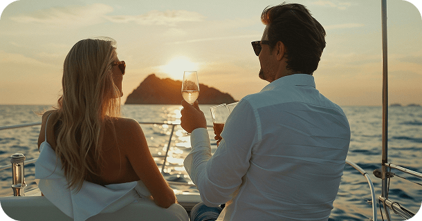 Wenn man etwas Wichtiges sagen möchte, tut man das am besten nicht mit Worten, sondern mit einem Blick unter dem Licht des Meeres. Ein romantischer Abend auf einer Yacht ist, wenn es keine Zuschauer gibt, nur Sie, die Wellen und den mit Sternen leuchtenden Himmel. Wir kümmern uns um die Musik, die Beleuchtung und die Getränke, und Sie genießen einfach den Moment. Ohne Prunk, ohne Überflüssiges – nur Aufrichtigkeit und Nähe, die man nicht kaufen kann.